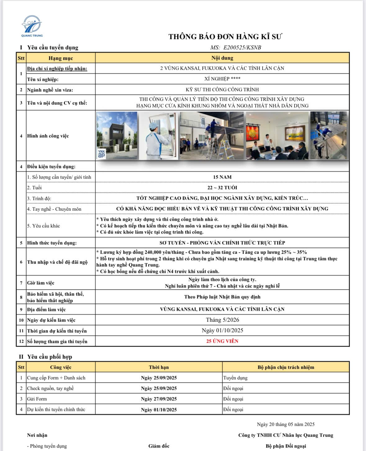 Cơ Hội Làm Việc Tại Nhật Bản Dành Cho Kỹ Sư Xây Dựng – Phỏng Vấn Tháng 10/2025