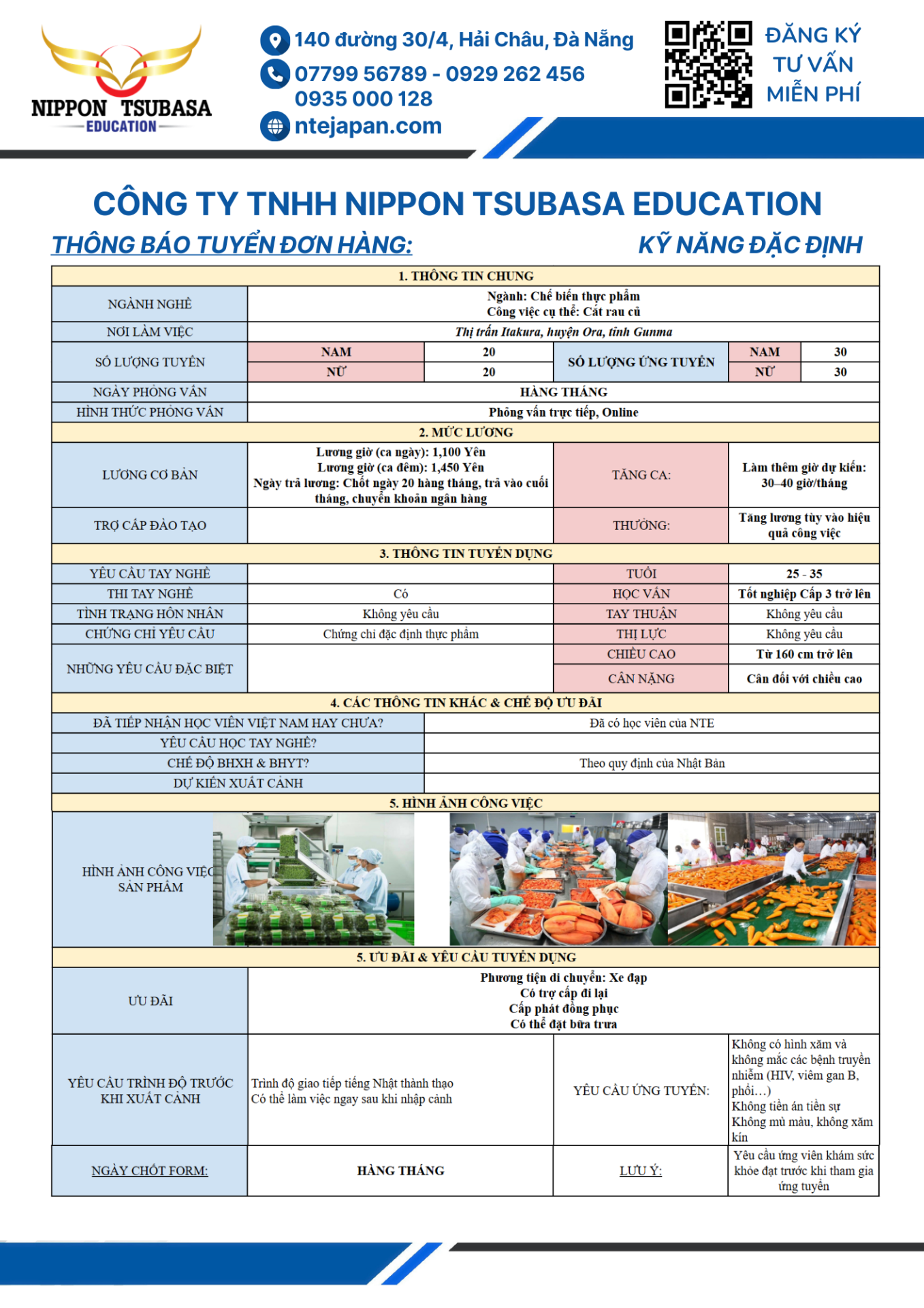 ĐƠN TUYỂN – THUỘC DIỆN KỸ NĂNG ĐẶC ĐỊNH (Chế biến thực phẩm - Công việc cụ thể: Cắt rau củ)