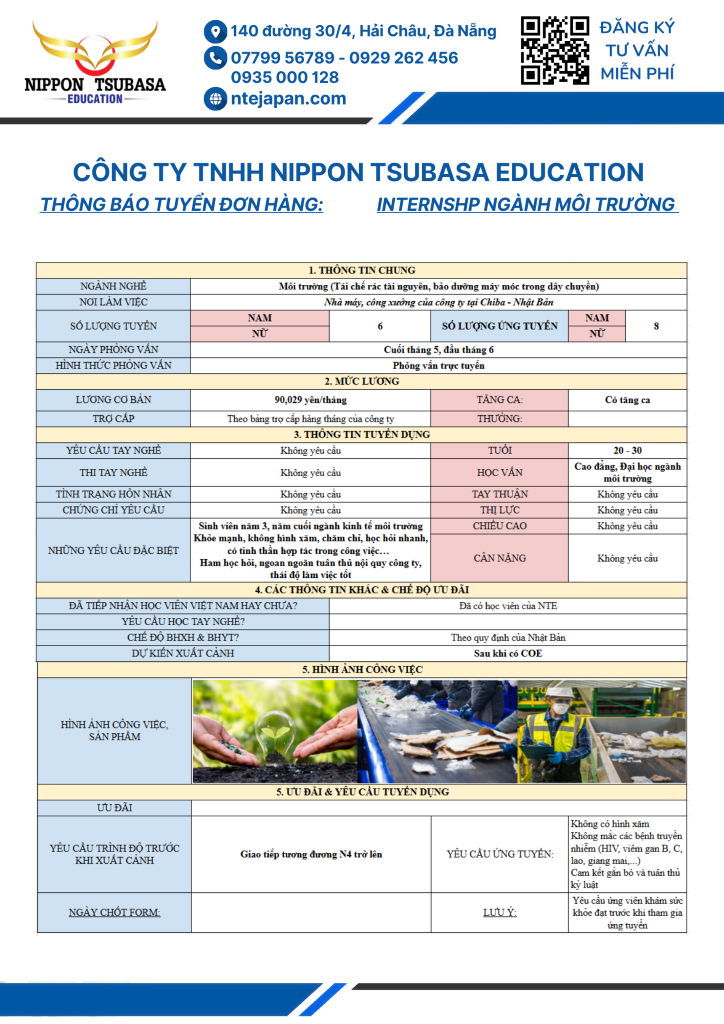 Cơ Hội Thực Tập 1 Năm Ngành Môi Trường Tại Nhật Bản – Internship 2025