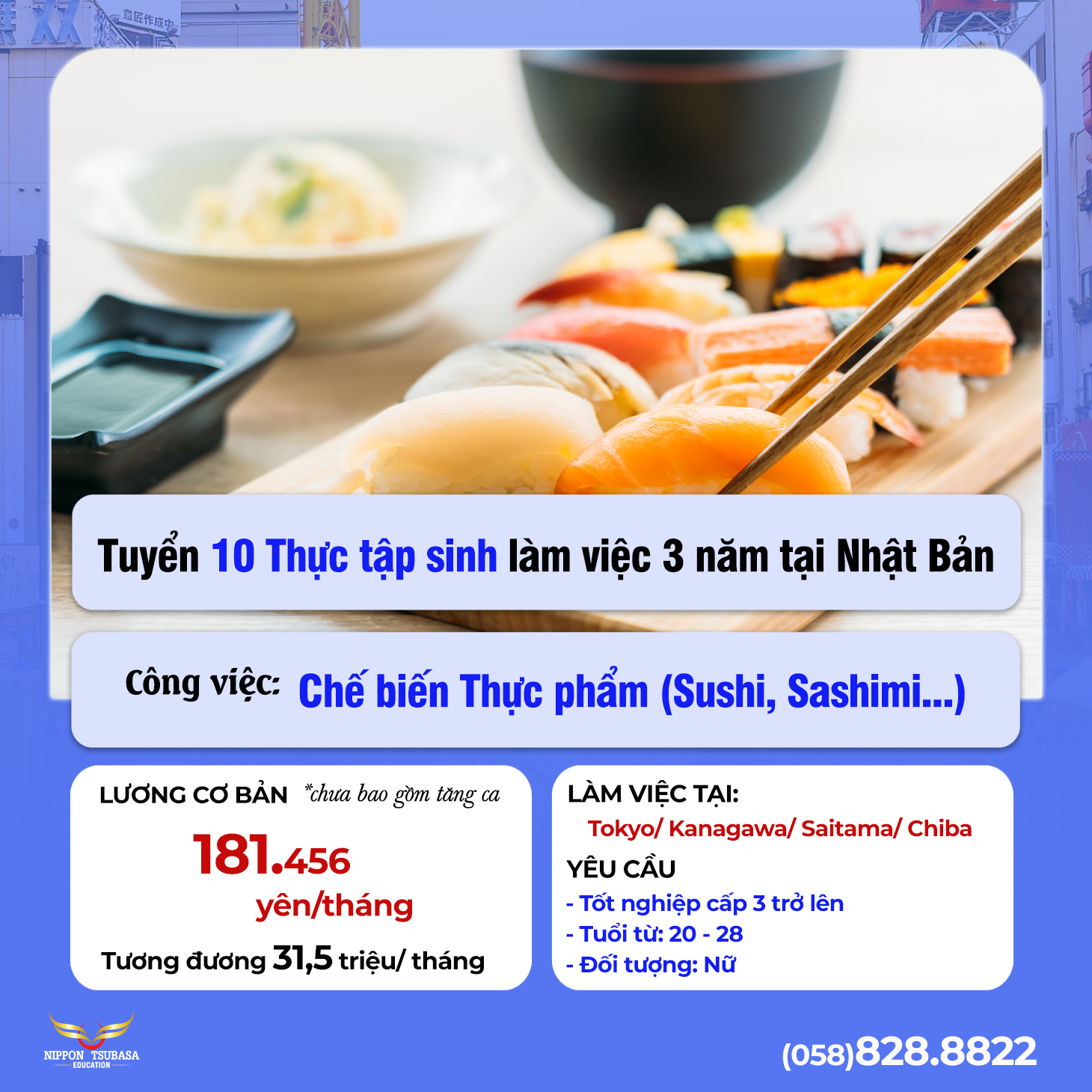 Đừng bỏ lỡ các đơn tuyển Chế biến thực phẩm làm việc tại Nhật Bản trong tháng 6/2024, với mức lương trên 30 triệu/ tháng (chưa tính tan ca), cùng với nhiều đãi ngộ hấp dẫn, thưởng và tăng lương hằng năm.